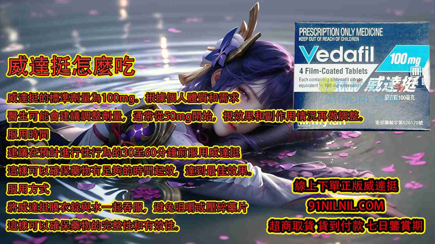 - 建議在預計進行性行為的30至60分鐘前服用威達挺。這樣可以確保藥物有足夠的時間起效,達到最佳效果。